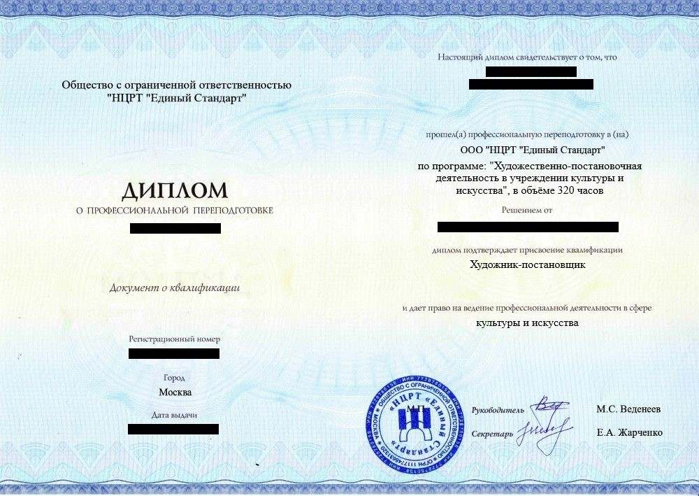 • Диплом о профессиональной переподготовке установленного образца. Срок действия: бессрочно